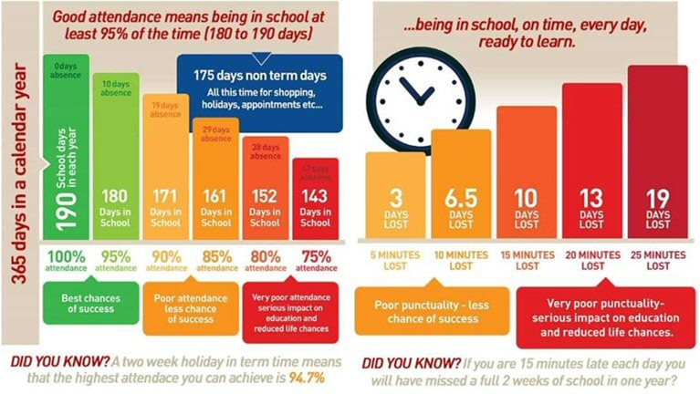 Attendance lead will give the family a call to chat about the reasons for the 10 days absence. In this phone call, the Attendance lead will offer support and advice, reminding families of why attendance in school is so important.