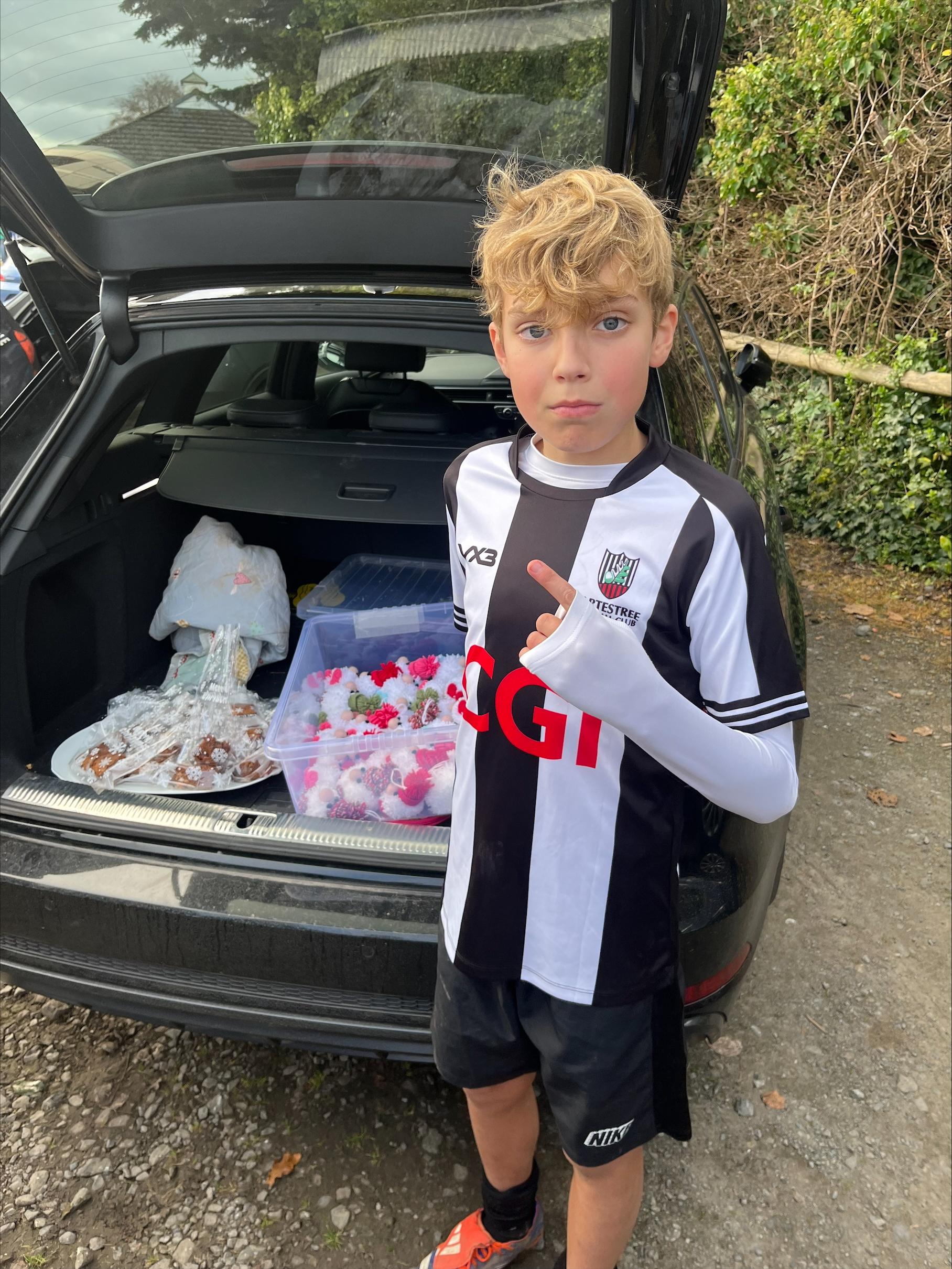 Inspired by the Mini Money Makers Year 6 project, Joseph made 30 Christmas gonks and some chocolate brownies. He decided to sell them to his team mates and their parents on Saturday. Joseph made over £70 for The Bartestree Sharks, his incredibly grateful football team.