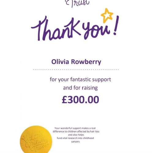 Well done to Olivia in Year 2 for completing her sponsored haircut on behalf of The Little Princess Trust. Olivia raised £300 for this charity as well as donating her hair.