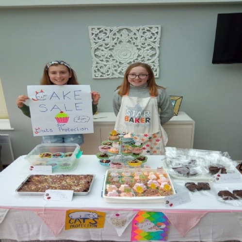 On Friday 14th April 2023, Amelia and Erin held a cake sale at Erin’s house to raise money for the Cats Protection.
