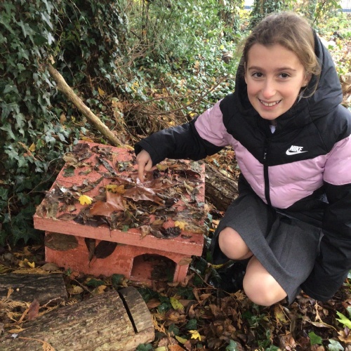 We are incredibly proud of Erin for thinking of our school. The hedgehog house has been placed in our Conservation Area in a cosy corner ready for our new friends to move in.