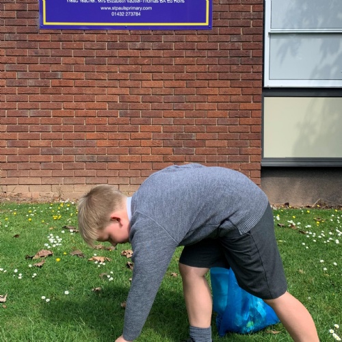 Albert Cartwright arrived at school this morning with a blue carrier bag full of rubbish that he had kindly collected from our local community. Albert is very keen on keeping the animals safe both on land and in the ocean. Well done Albert, you certainly deserve a place on the Community Champions web page!