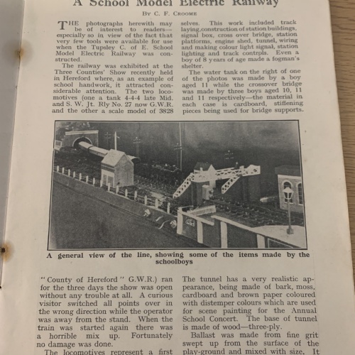Thank you to Mr Vincent, a pupil of St Paul's from 1954 - 1959. Mr Vincent has kindly given us his original copy of the 1931 edition of The Model Railway News. Photographed is a wonderful article written about the Tupsley School Model Railway.